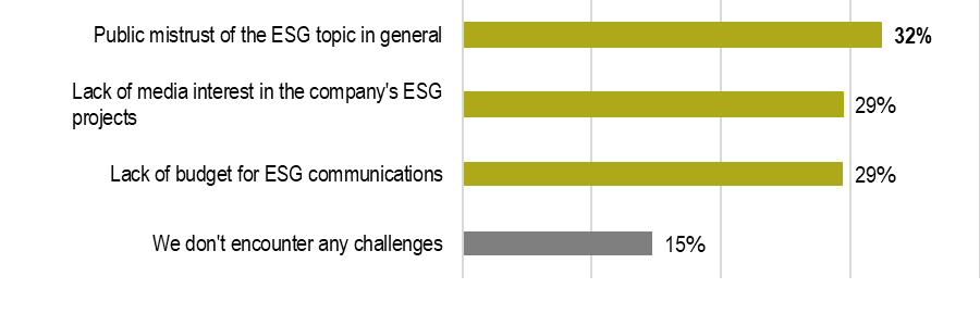 4. The main barriers are mistrust, weak media interest and lack of budget: ESG communications are limited by external skepticism, lack of funding and the media's unwillingness to talk about this topic.